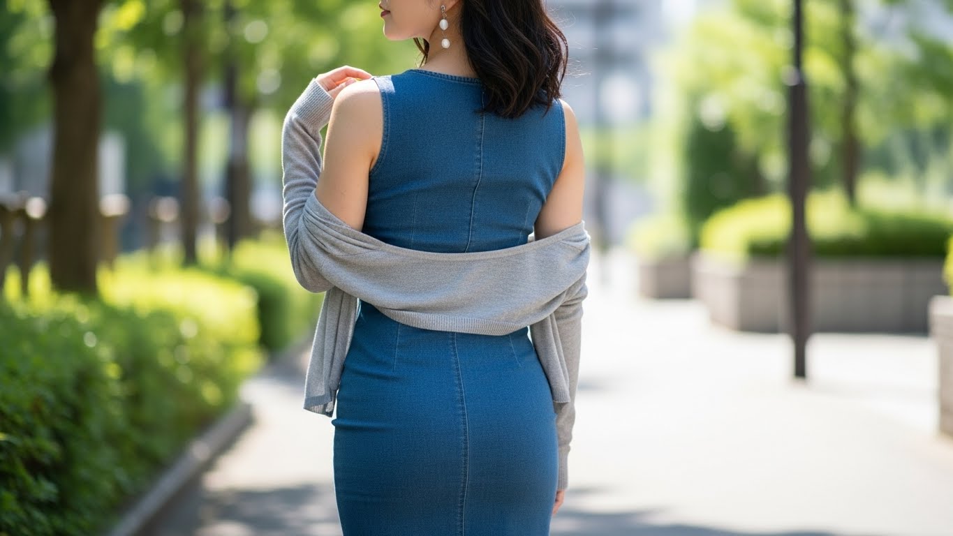 タイトなデニムワンピースが選ばれる理由はシンプル。