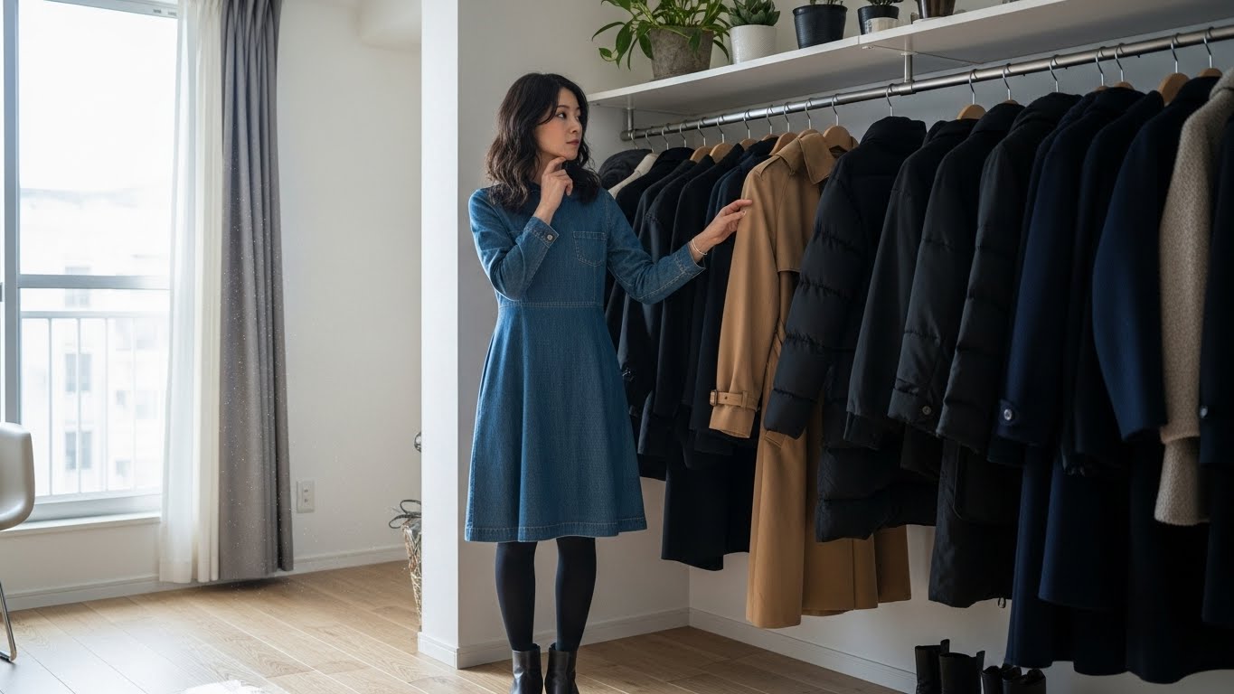 冬のデニムワンピース、きれいめに着るのは意外と難しい?