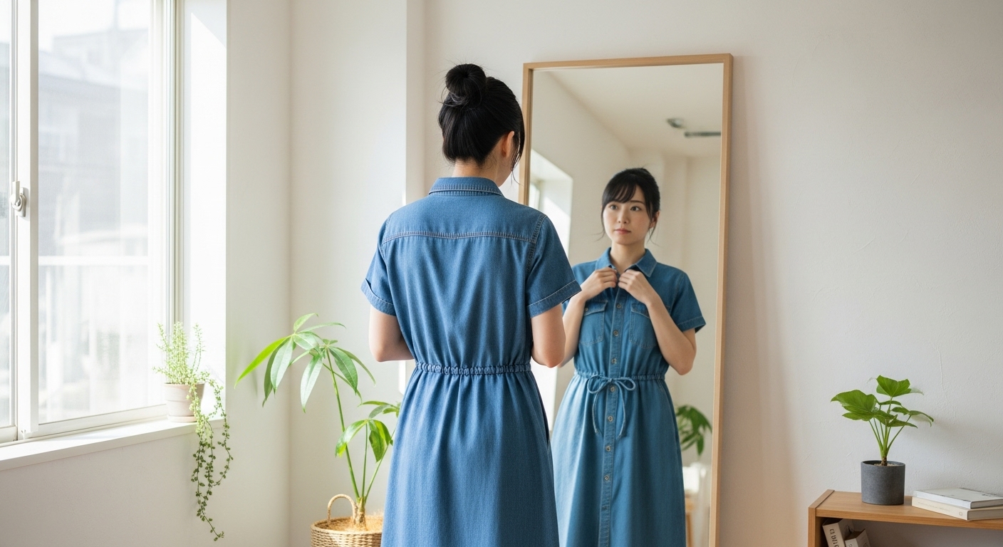 デニムワンピースは、選び方と着こなし方次第で体型カバーの強い味方になります。