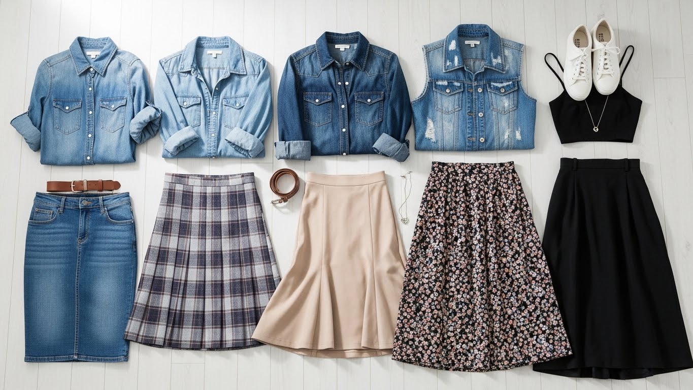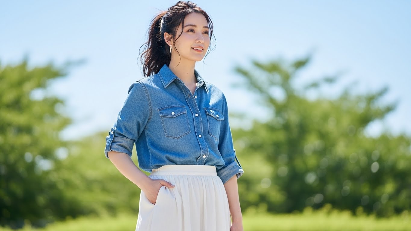 【デニムシャツ×スカートコーデ】季節・年代別の着こなし術とダサ見え回避のコツ