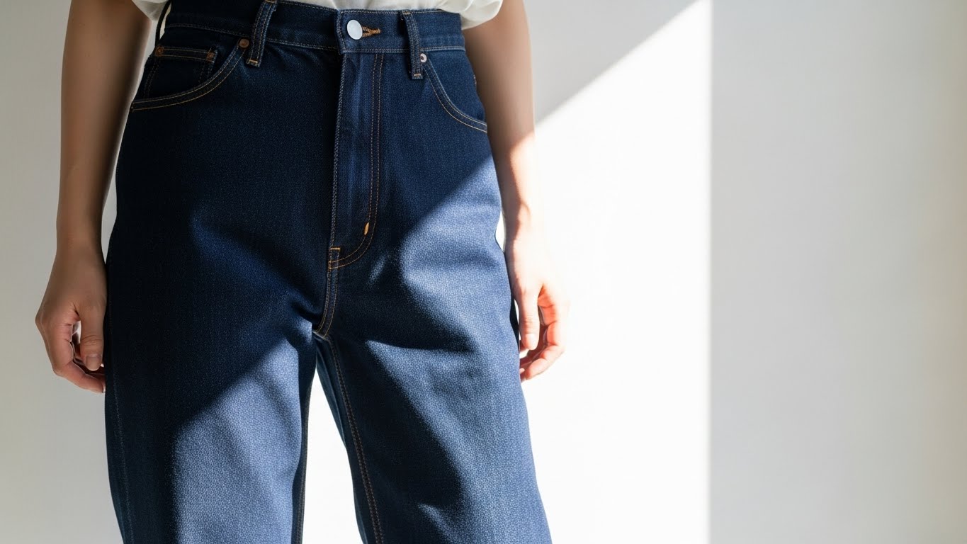 濃いインディゴブルーを選ぶ場合は、トップスや小物で明るさをプラスしてバランスを取ってくださいね。