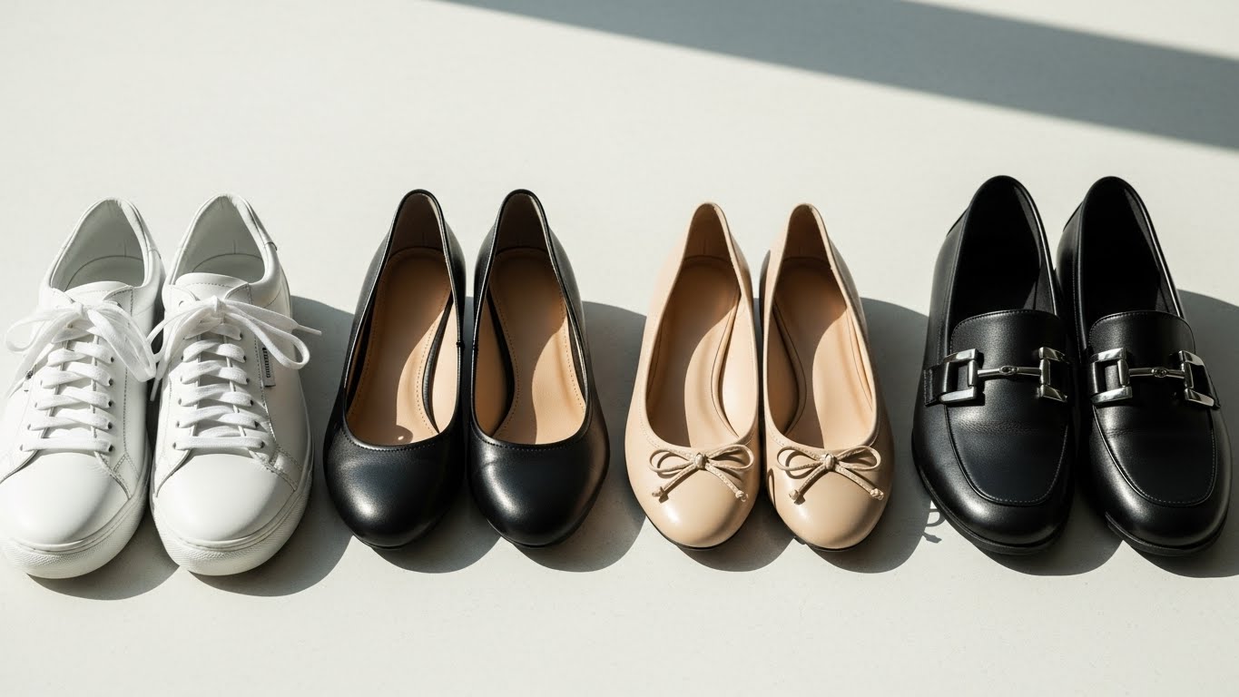 ローファーやバレエシューズは、パンプスより楽に履けます。