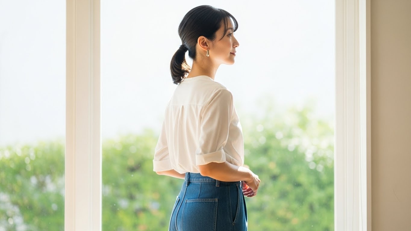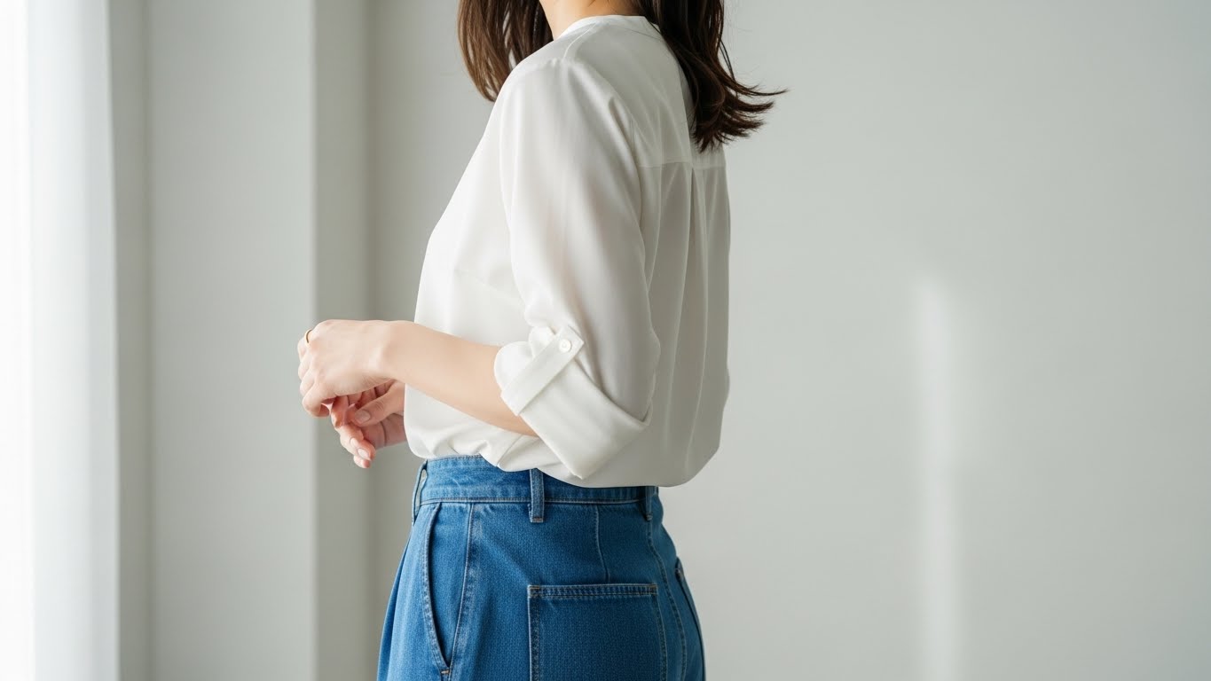 白シャツとデニムパンツのコーデって、定番すぎて逆に「普通」になっていませんか?この記事では、ファッション初心者の女性でもすぐに真似できる、垢抜けた着こなしのコツをお伝えします。