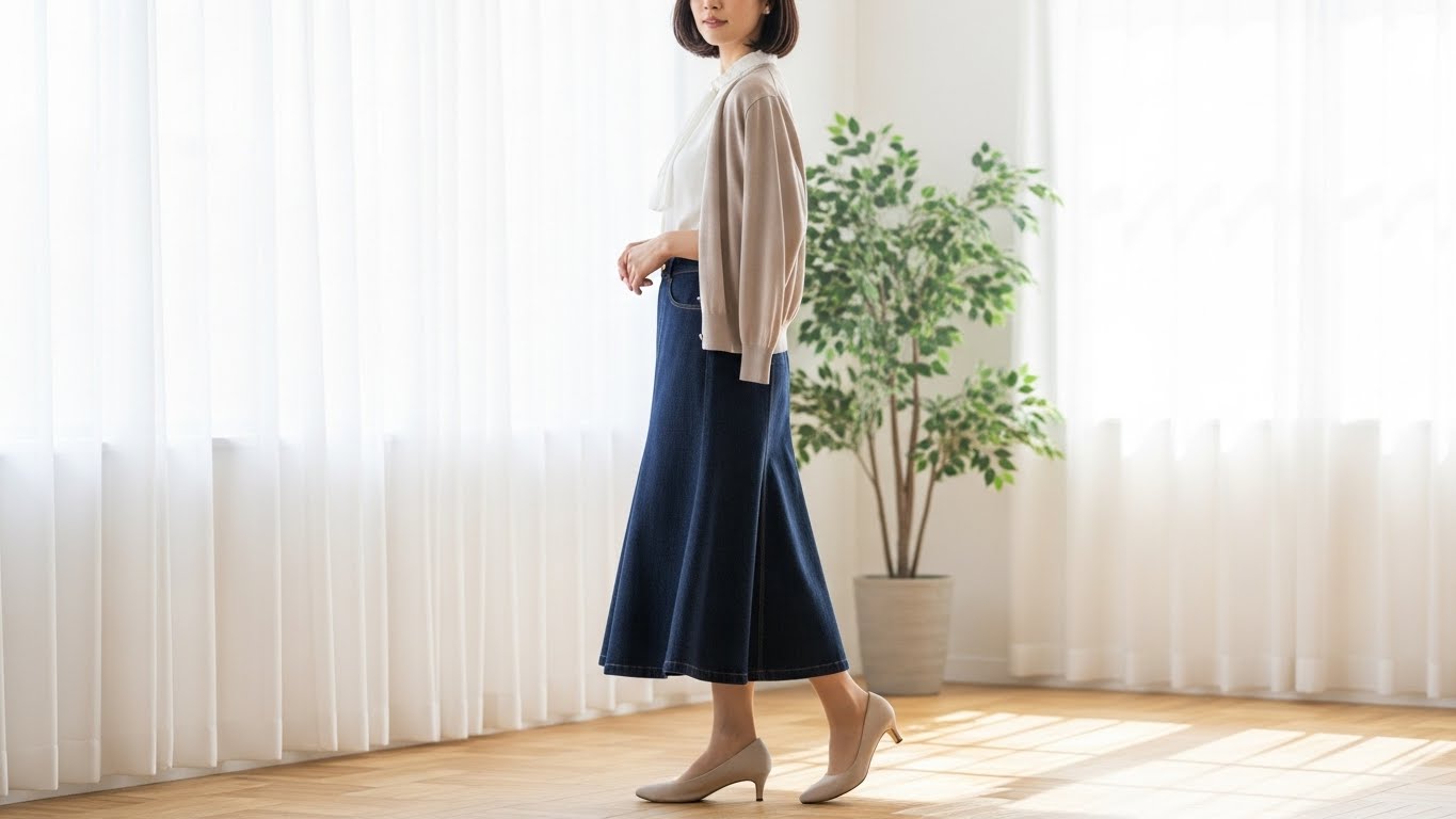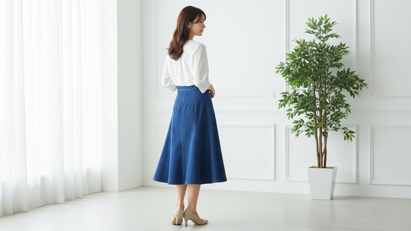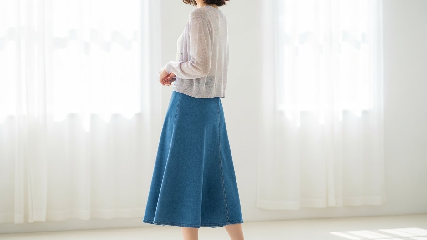 フレアデニムスカートは、大人の女性にとって心強い味方です。