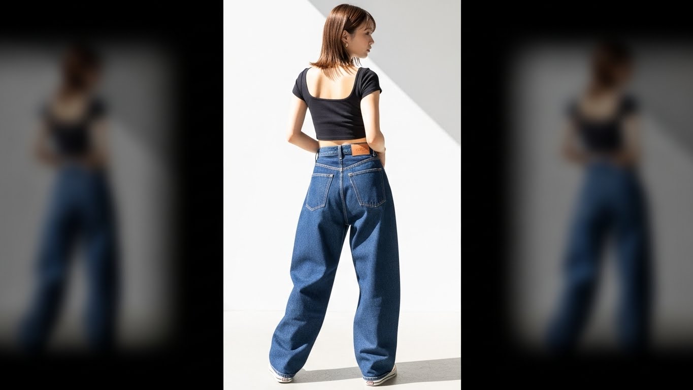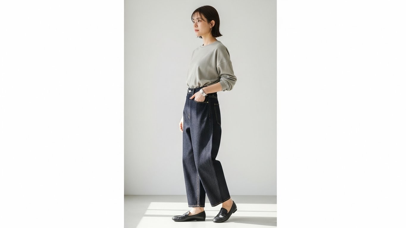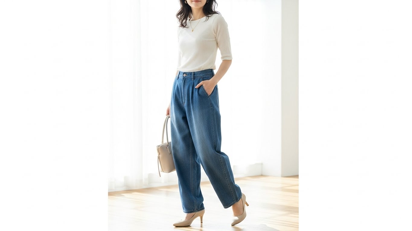 せっかくのバギーデニムも、合わせ方を間違えるとバランスが崩れてしまいます。