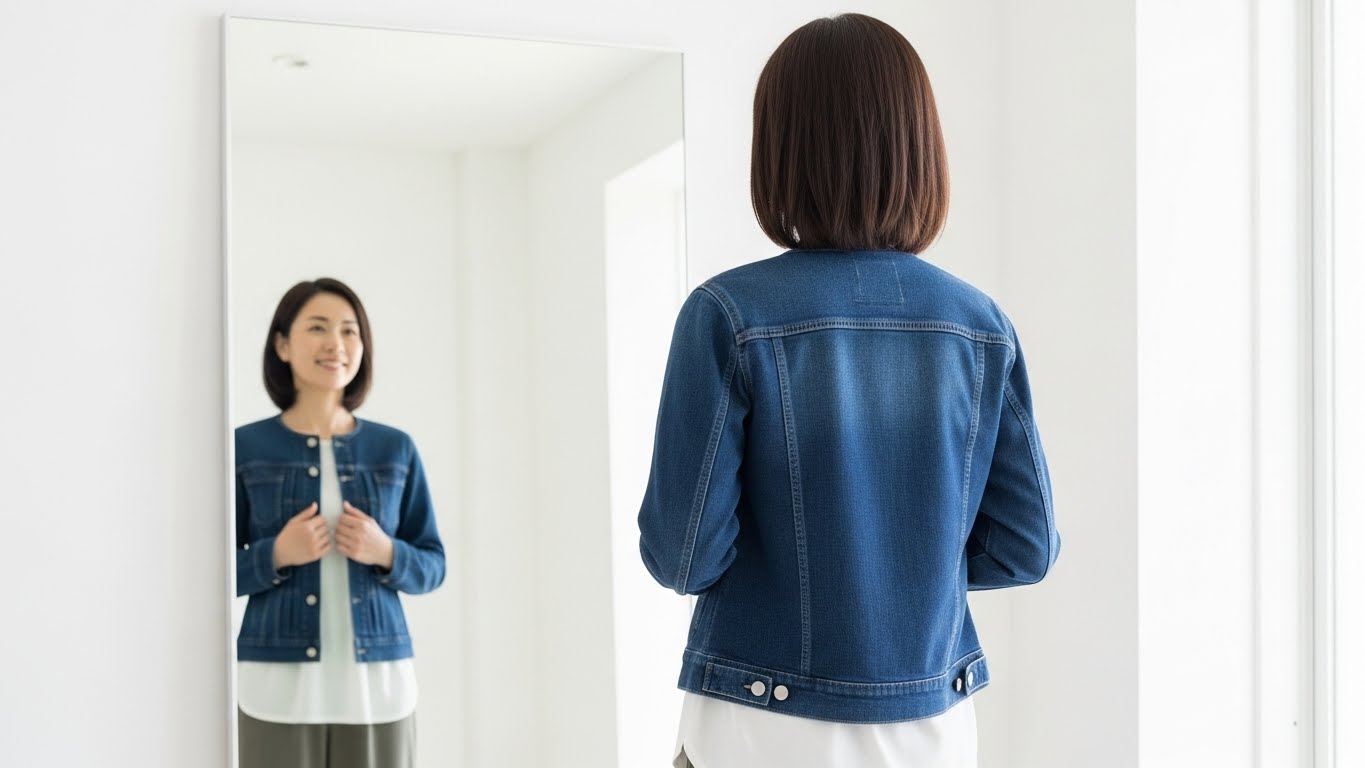 40代のデニムジャケット選びは、サイズ感と色選び、そしてシンプルなデザインを意識することが大切です。