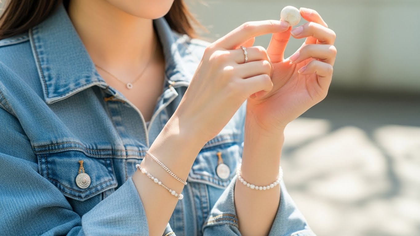 → 繊細なネックレスやピアスで骨格ウェーブの魅力を引き立てて