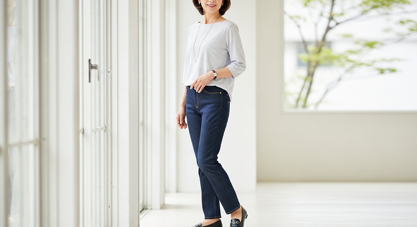 50代のデニムパンツ、もう迷わない!体型カバーできる選び方とコーデ