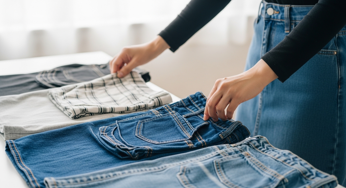 デニムスカートを選ぶ際は、素材の質感とストレッチ性を必ず確認しましょう。