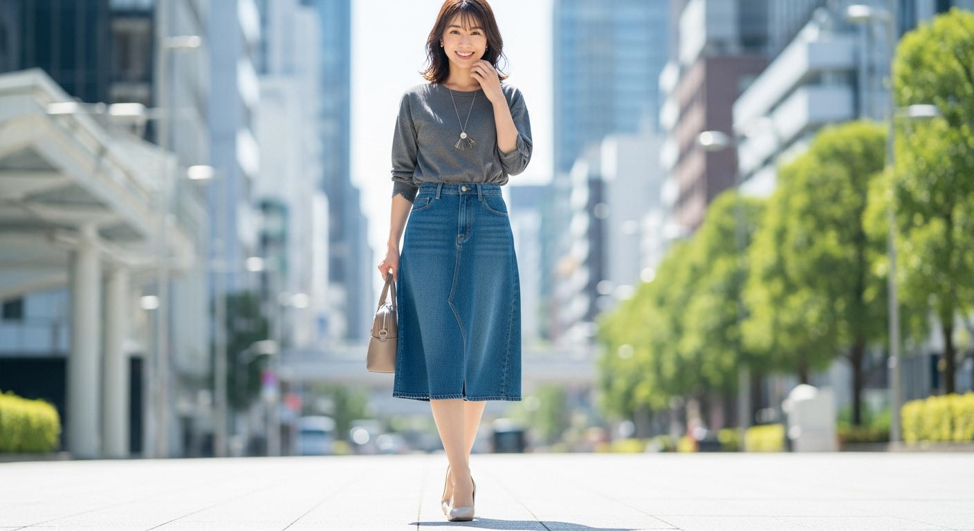 この記事では、デニムスカートの基礎知識から、年代別・体型別の選び方、季節ごとのコーディネート術まで、わかりやすく解説していきます!