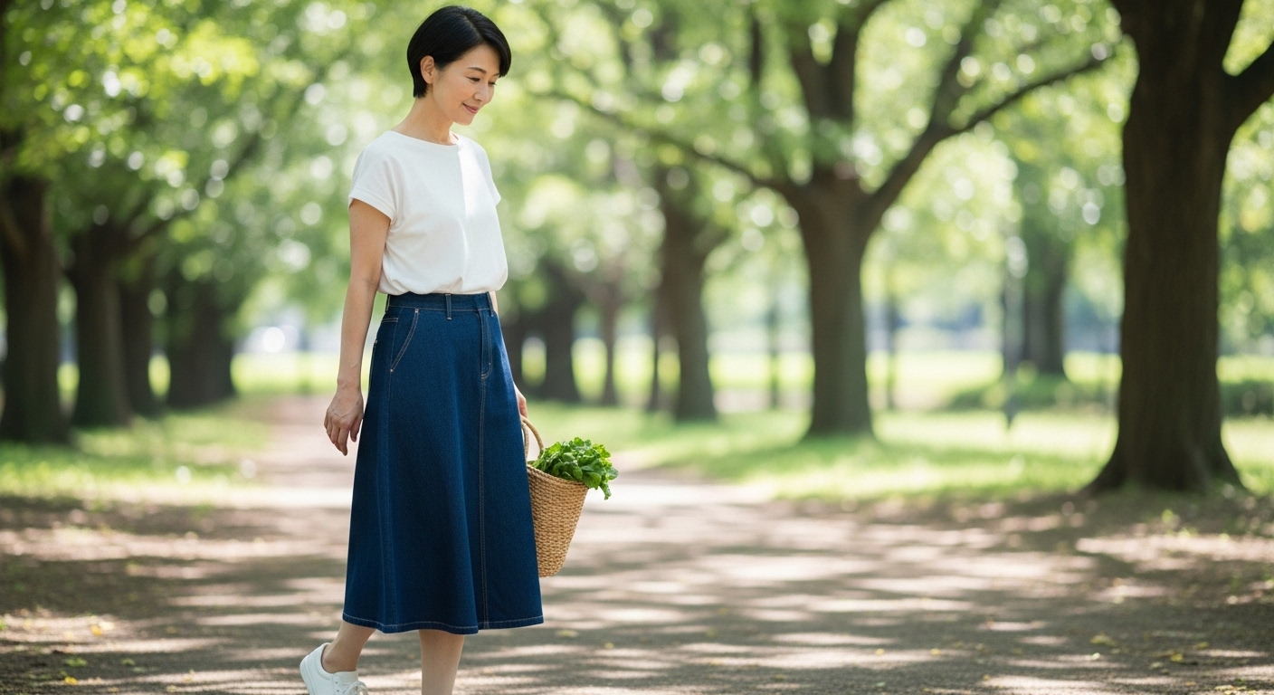 この記事では、50代が「痛い」と思われないデニムスカートの選び方から、体型別の着こなし術、シーン別コーディネートまで詳しく解説します。